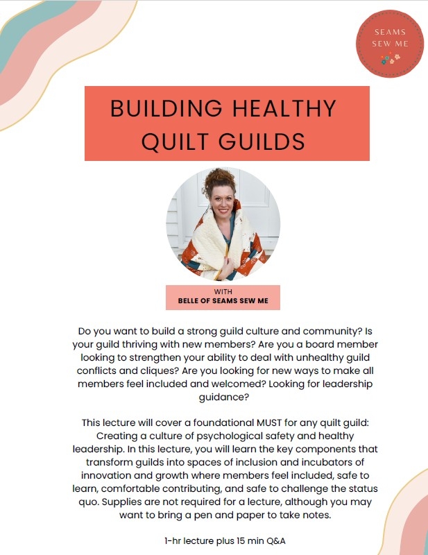 On February 26 at 2 PM US Eastern Time Global Quilt Connection Presents Belle Brunner Lecture "Building Healthy Quilt Guilds" Recording Available for 72 Hours After Live Event