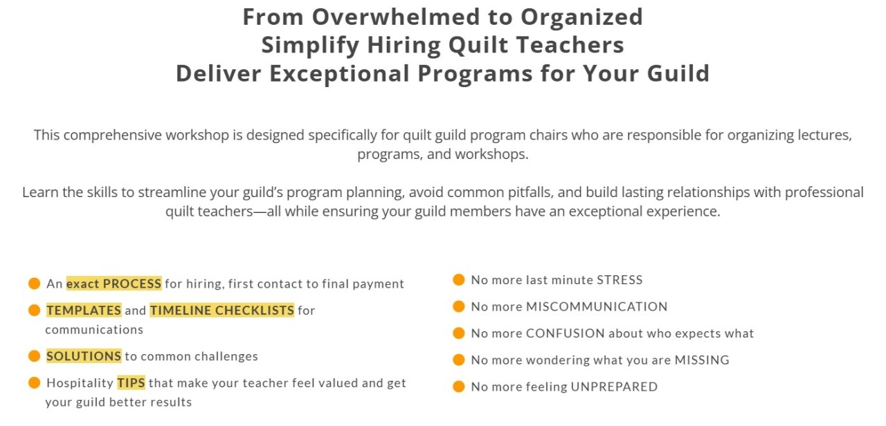 Want to make it EASY to bring in amazing teachers for your guild? Want to host AMAZING workshops? Want to have the reputation as a ROCK-STAR QUILT GUILD?