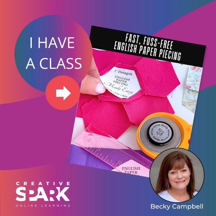Learn my fun and relaxed approach to doing log cabin-style piecing on unmarked scrap paper triangles;, then turn your triangles into sparkling wall-hangings, pillows, table runners, or the start of a spectacular larger quilt! The class has 30+ videos to guide you through all the stages, with many design options. Because it’s on-demand you can take it at the pace that suits you!